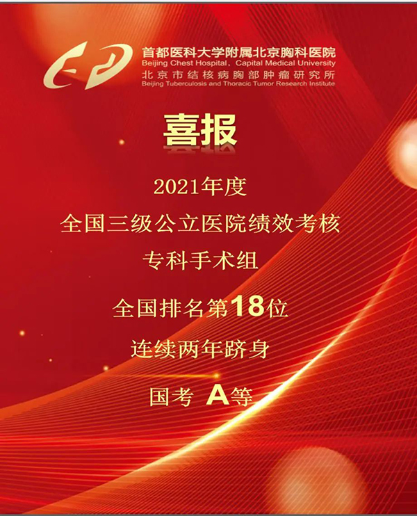 【喜报】北京胸科医院2021年度“国考”排名全国第18位,连续两年A等