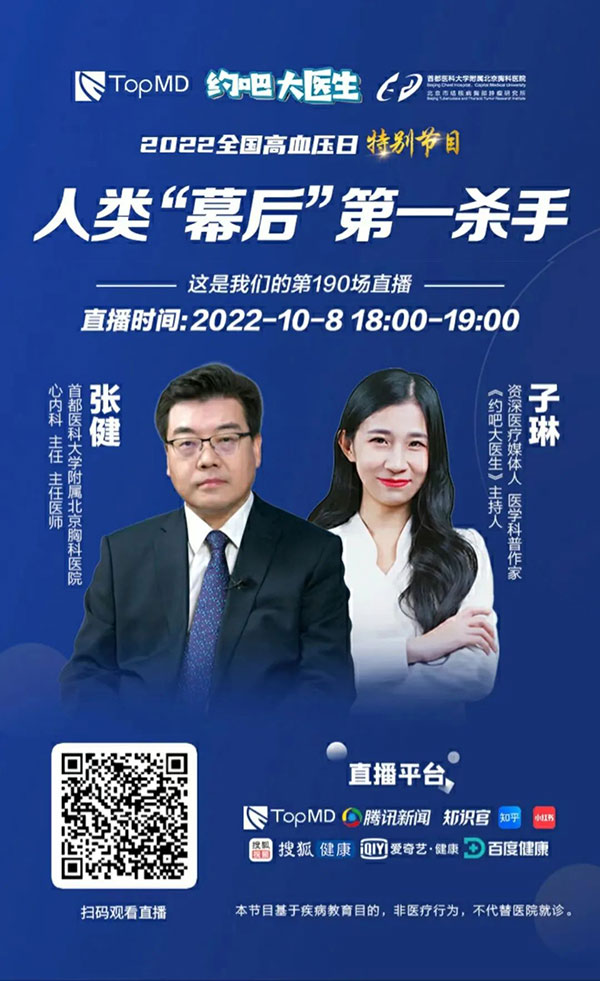 《约吧大医生》第190场患教直播即将开启!本场直播同时也是TopMD《约吧大医生》2022全国高血压日特别节目。