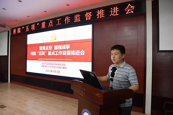 所院“五项”重点工作监督推进会每月召开一次,自6月2日启动以来,已连续组织召开三次,达到了落实主体责任、做到查缺补漏、建立动态台账、加强部门协作、搭建平台解决问题的五个效果,促进了“两个责任”同频共振、同向发力,形成保障合力,有效推动上级重要决策部署和所院重点工作落实。