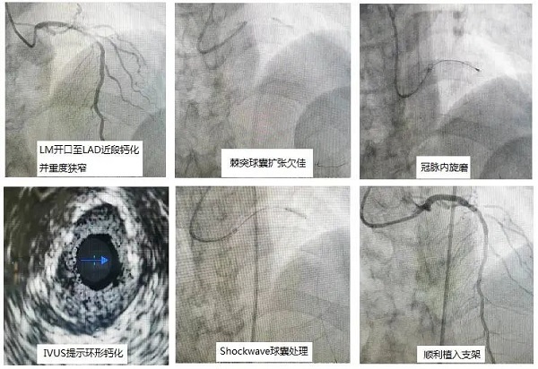 该病人先后应用预扩张球囊、棘突球囊、冠脉旋磨等技术均不能实现钙化病变充分扩张,此种情况将影响支架膨胀、贴壁,严重影响冠脉钙化病变介入治疗预后,如若没有新的技术手段,患者将不得不转入外科搭桥治疗。今年5月,Shockwave系统的国内应用,为深层次钙化病变患者带来了确切疗效。经采用Shockwave冲击波球囊碎石处理,患者中膜钙化环被完全打开,实现了冠脉支架充分膨胀、贴壁,有效完成手术。另外,该患者左主干开口重度狭窄,对左主干病变进行冠脉旋磨处理,属于高危诊疗操作,非常考验医疗团队的救治能力和水平。此次手术的成功为患者赢得了良好的远期预后效果。