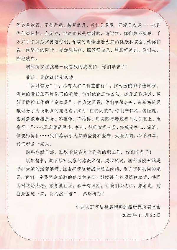 下一篇: 学习二十大精神,笃行不怠谱新章——北京市结核病胸部肿瘤研究所党委组织开展“学习贯彻…
