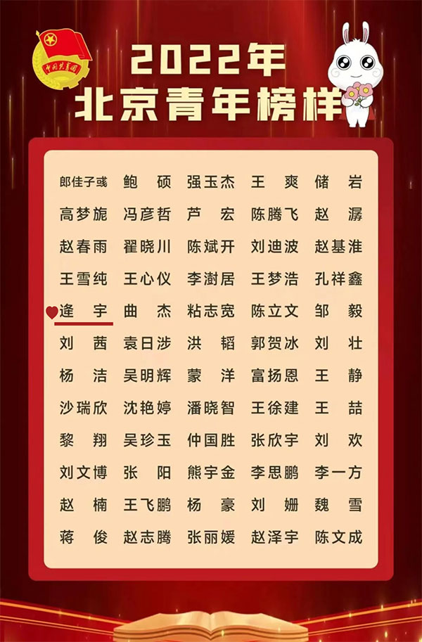 逄宇教授作为医院团委、市医院管理中心团委、市卫生健康委团委、团市委机关工作部推荐人选,其事迹感人,催人奋进,是首都卫生系统青年科技人才的典型代表。