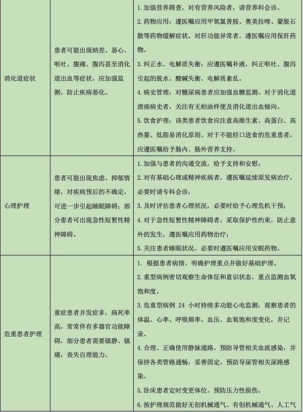 3 | 加强感染监测与防控:新型冠状病毒感染治疗期间,抗感染需要同时覆盖常见社区获得性病原体,治疗期间监测细菌、真菌、非典型病原体及其他病毒,警惕混合感染甚至耐药菌感染的可能,根据病原学检查结果或治疗反应适时调整抗感染治疗方案。 |