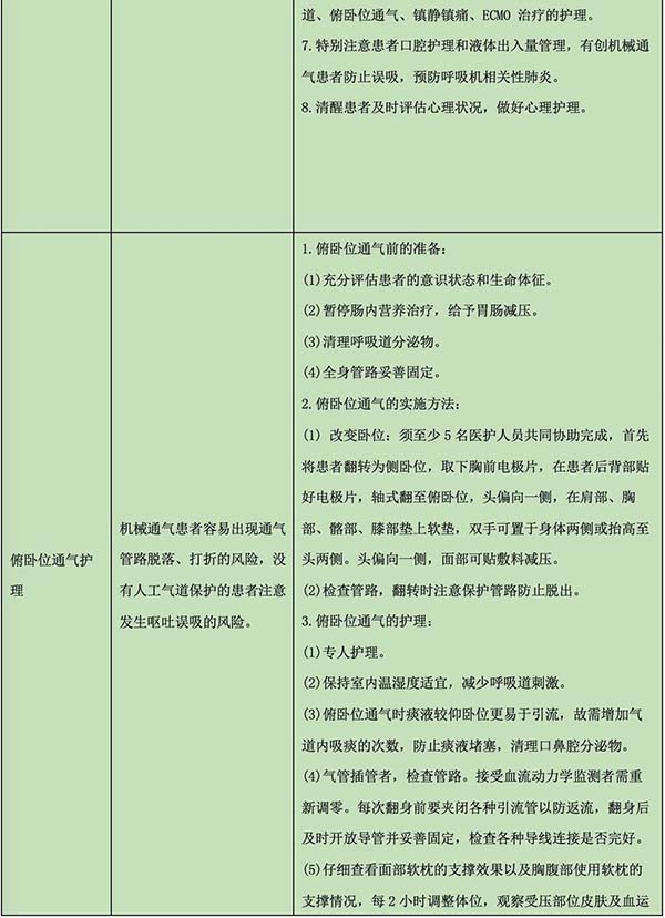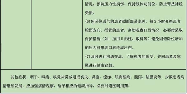 c. 俯卧位低潮气量通气:若新冠病毒感染患者通过低潮气量通气未能实现充分氧合,下一步首选俯卧位低潮气量通气以改善氧合,要求在24小时内尽量长时间俯卧位通气,即每日12-16小时。