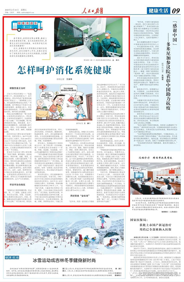 2023年2月10日,人民日报海外版对医院消化内科主任何玉琦,围绕如何呵护消化系统健康进行采访报道。