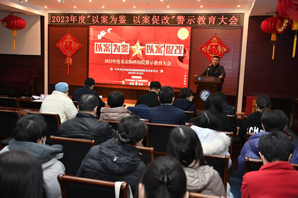 为深入学习贯彻党的二十大精神,坚持党要管党、从严治党,深入推进医院党风廉政建设和反腐败斗争走深走实,2023年2月10日下午,北京胸科医院党委组织召开了“以案为鉴、以案促改”警示教育大会,通报剖析违规违纪违法案例,以典型案例为镜鉴,教育引导全院干部职工坚守廉洁自律底线,筑牢拒腐防变思想防线。
