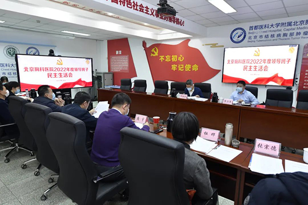 2023年2月14日,北京胸科医院(北京市结核病胸部肿瘤研究所)党委在行政B区会议室召开2022年度北京胸科医院领导班子民主生活会,北京市医院管理中心第三督导组组长、党委常委、副主任郭胜亚同志,副组长、组织人力处处长李方亮同志到会指导。