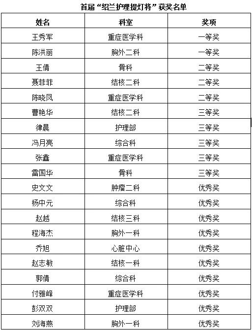 2022年4月由护理部组织首届“绍兰护理提灯奖”评选活动,严格按照评选条件,本着公开、公正、透明的原则,遴选优秀护理人员20名,年度支出金额10万元,经费使用具体情况见附件。