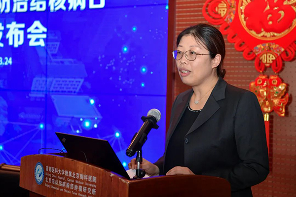 在北京胸科医院“让肺部更健康,胸科在行动”——2023年世界防治结核病日新闻发布会上,新闻发布人医院门诊办公室副主任秦娜围绕北京胸科医院互联网医院建设情况进行新闻发布。
