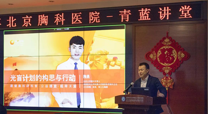讲座邀请了首都医科大学附属北京朝阳医院眼科陶勇医生、中国医学科学院肿瘤医院胸外科张国超医生这两位青年才俊进行分享。首先陶勇医生以“光M计划的构思与行动”为主题,讲述了自己目前多重身份的奋斗主线——以医学为圆心,科研和公益为半径,实现天下无盲的人生事业。贯穿了从医二十年来对人生的思考与感悟,透过医学这扇窗口,看见人性的善恶与生死。用温和谦逊的口吻,袒露从医心路历程,分享人生治愈之术。