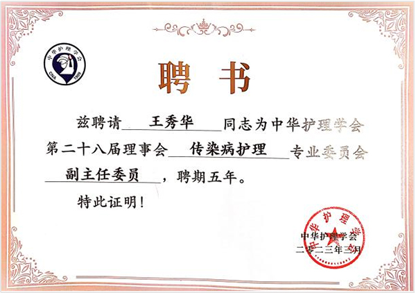 喜讯 | 护理部主任王秀华担任中华护理学会第二十八届传染病护理专业委员会副主任委员
