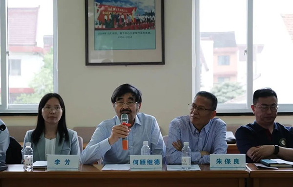 在何穆教授曾经就读过的廊下小学,金山区教育工作党委书记顾宏伟、廊下镇党委书记李芳、廊下镇副镇长千利芳、廊下小学原书记、校长朱保良,廊下小学书记、院长宋红娟以及何氏后裔何顾继德先生等热情接待了我院一行。大家在老校长朱保良充满激情地讲解下参观了廊下小学何鄂雕塑馆和杰出校友馆,并召开了座谈交流会。