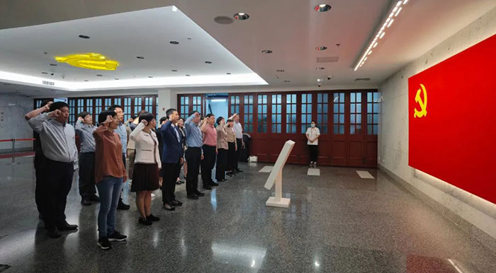 5月6日下午,在潘军华同志的带领下,我院一行来到中共一大会址,这里是中国共产党梦想起航的地方,也是中国共产党人的精神家园。在中共一大会址纪念馆宣誓厅,面对党旗,潘军华书记带领胸科医院部分领导班子成员,以及部分党支部书记、中层干部、职工党员重温入党誓词,大家举起右拳,庄严宣誓,那铿锵有力的宣誓声响彻大厅,也宣示北京胸科医院党员们的坚定政治信念。