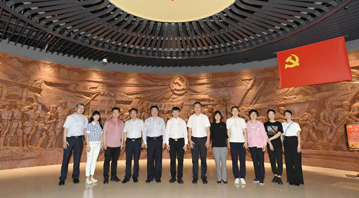 座谈结束后,潘军华书记带队参观了海南省史志馆。在引导员的带领下,党员干部有序参观了海南全面深化改革开放和中国特色自由贸易港建设成果展厅,通过体验式、沉浸式的观展体验,全面了解海南逐步探索、稳步推进中国特色自由贸易港建设的丰硕成果,深刻感悟海南改革发展的历史经验。随后,大家参观了史志馆的“红旗不倒”主题展厅,一幅幅图片,一段段故事,反映着中共琼崖地方党组织紧紧依靠人民群众,历经土地革命战争、抗日战争和解放战争等,书写的“二十三年红旗不倒”光辉篇章。
