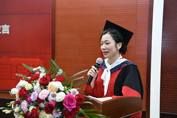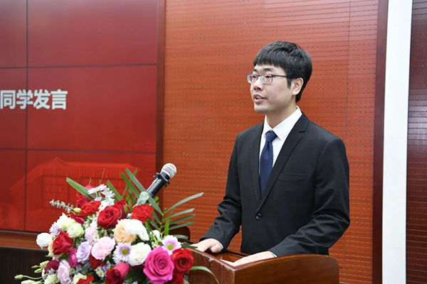 毕业生代表,病原生物学专业博士研究生张婷婷,向大家分享了在胸科求学六年的所想所获,表示将擦亮胸科人的名牌作为抱负,心怀理想,不负韶华,不负期待。在校生代表,临床病理学专业硕士研究生徐福东,向即将离开母校的师兄师姐们表达了不舍和祝愿。“陆止于此,海始于斯”,他祝福师兄师姐们一鸣从此始,相望青云端。