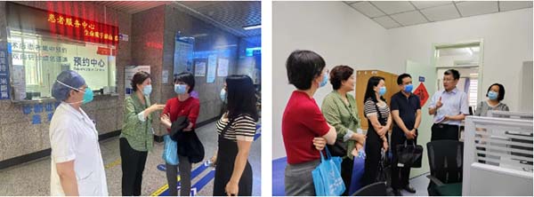 郭妍宏副主任等一行三人首先对我院“门诊患者服务中心”进行实地调研,对门诊“接诉即办”工作开展情况进行查看,了解医院为提高服务品质开展的相关工作。随后来到公众和健康服务中心了解医院市民服务热线运行情况、“信访和接诉即办”人员配置、院内投诉工单处理以及总值班等工作情况。郭妍宏副主任对医院整合医院资源成立公众和健康服务中心,为百姓提供更高效优质的服务给予了高度赞扬。
