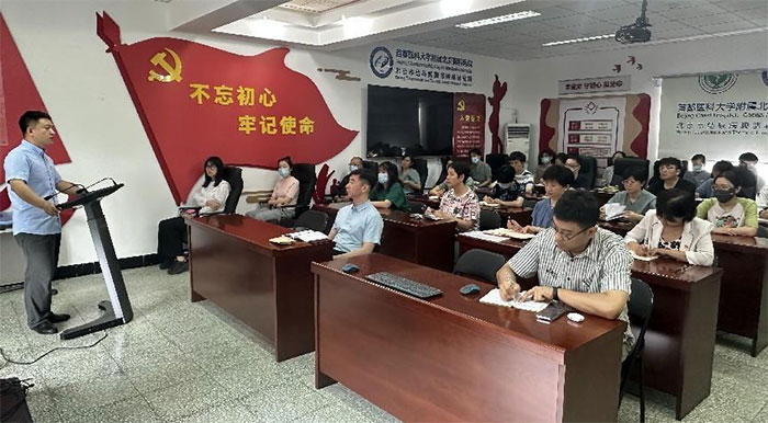 为深入学习贯彻习近平新时代中国特色社会主义思想,凝聚支部力量,7月27日,北京胸科医院党委副书记、纪委书记庞宇以“学习习近平总书记关于北京工作论述,汲取医院高质量发展力量”为主题,为所在党支部和联系党支部的党员同志们讲授了专题党课。呼吸党支部、行政三党支部、影像党支部、肿瘤三党支部和教育党支部等五个党支部以主题教育党日的形式组织支部党员参加了此次专题党课。呼吸党支部书记、呼吸与危重症医学科主任叶寰主持此次主题教育党日活动。