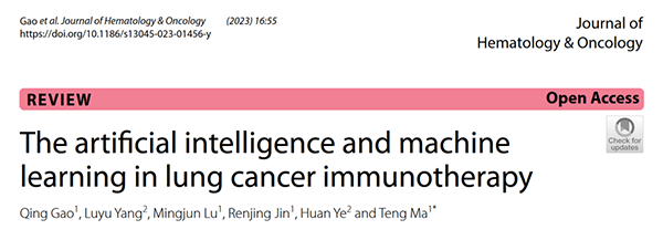 近日,首都医科大学附属北京胸科医院肿瘤研究中心马腾教授团队在《Journal of Hematology &Oncology》发表题为“The artificial intelligence and machine learning in lung cancer immunotherapy”的综述文章。该文阐述了人工智能(AI)及机器学习(ML)在肺癌免疫治疗预测中的应用现状,并讨论了AI在肺癌辅助诊断中的局限性与未来前景。首都医科大学附属北京胸科医院2021级硕士研究生高晴为第一作者,马腾教授为通讯作者。