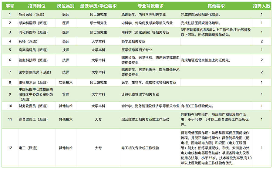 首都医科大学附属北京胸科医院2023年10月派遣岗位招聘公告