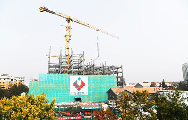 北京胸科医院新建医疗综合楼地上钢结构进度已过半。记者 党维婷/摄