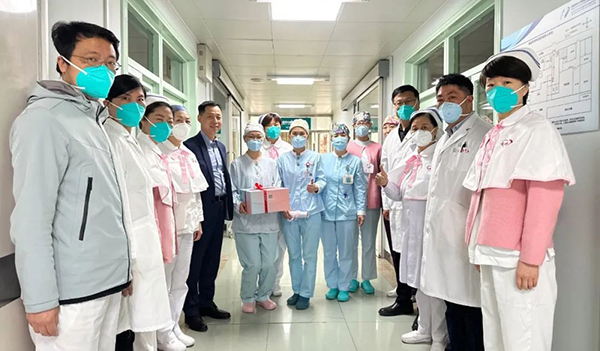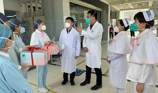 在这份守护健康的使命中,有前线医护人员的拼搏与付出,也有后方院领导的指引与关爱。3月22日上午,院领导及相关科室负责人手捧蛋糕和感谢信,向坚守在结核病防治前线的医护人员表达了诚挚的问候和美好的祝福。