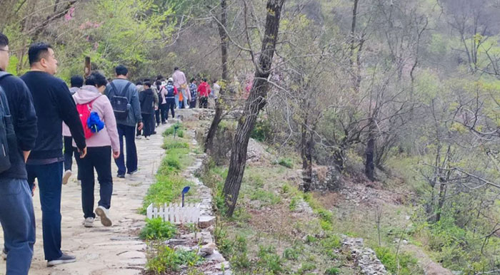 此次登山踏青的目的地为药王谷风景区,那里因地势、土壤、气候等外界因素,自然资源丰富,植被类型多样,野生药用植物种类繁多,而得名“药王谷”。该景区位于房山区周口店镇泗马沟村,此处正是我院派出的驻村第一书记李宁定点帮扶的村落,那里淳朴的民风, 得天独厚的自然环境深深的吸引着大家。