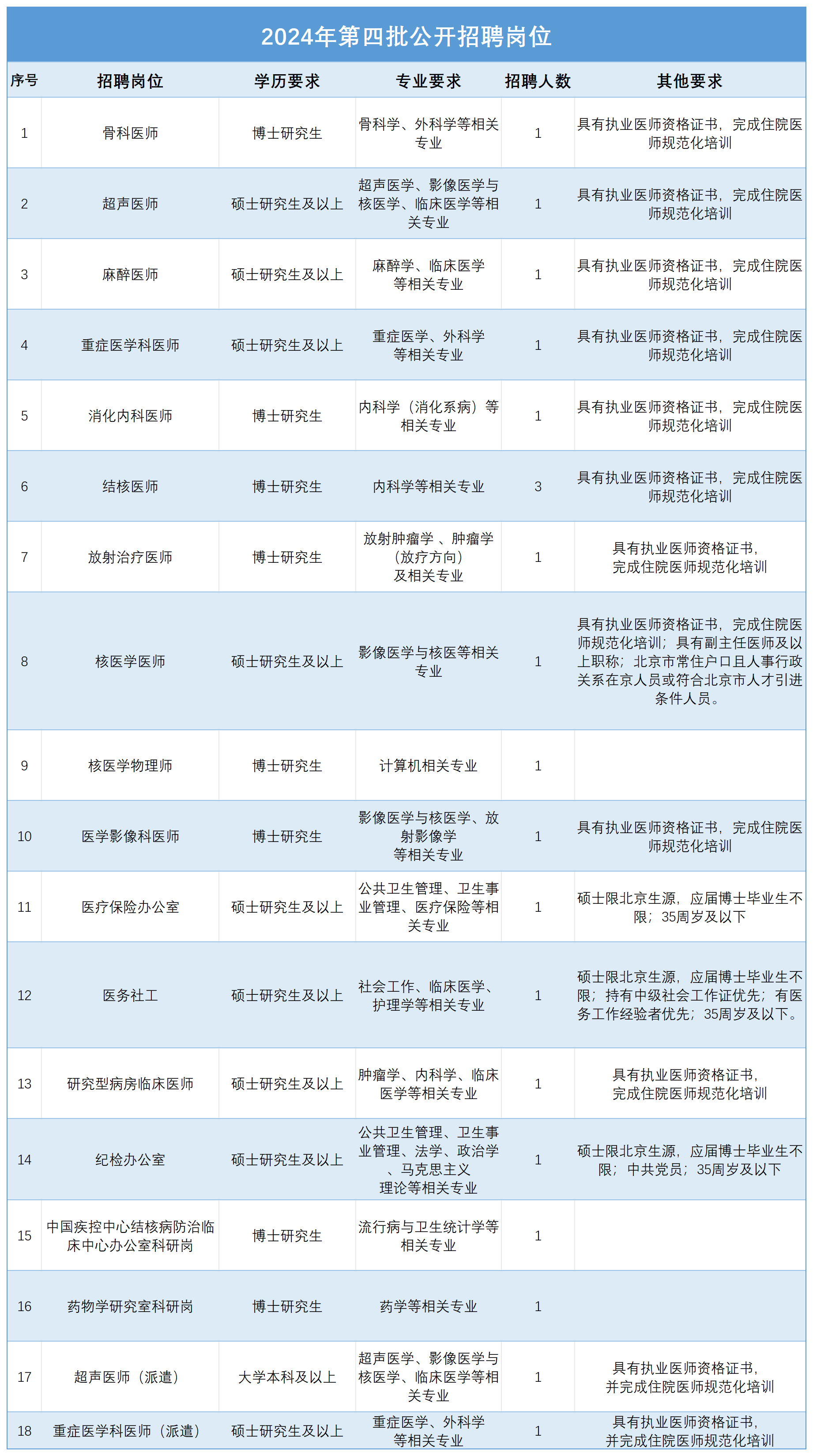 首都医科大学附属北京胸科医院北京市结核病胸部肿瘤研究所面向2024年应届毕业生(含社会人员等)公开招聘公告(四)