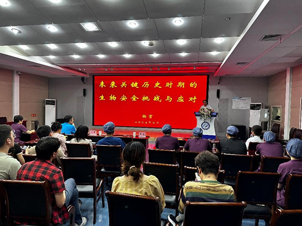 活动邀请了中国现代国际关系研究员、国家生物安全工作协调机制咨询专家、军事科学院战略评估咨询专家杨霄教授进行授课,并对生物安全的重要性和紧迫性进行了深入探讨。通过专业的讲解和互动交流,让支部党员更加清晰地认识到生物安全问题的多样性和复杂性,杨教授还带领大家回顾了党在生物安全领域所做出的努力和取得的成就,进一步明确党员在生物安全工作中的责任与担当。强调我们要以实际行动出发,积极参与生物安全相关工作,发挥党员的先锋模范作用,为保障人民群众的生命安全和身体健康贡献自己的力量。