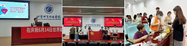 6月12日,在北京市卫生健康委团委、北京市红十字血液中心组织的培训会暨“热血青春卫健康”无偿献血志愿服务十五周年仪式上,我院团委、志愿者协会作为首都无偿献血青年志愿服务联合队成员单位出席活动。6月15日,我院派出2名青年志愿者董少雨、徐文昭前往王府井丹耀大厦献血站,招募、动员无偿献血者,并完成20余人的采血献血工作,用实际行动传递爱心与温暖,展现新时代青年的责任与担当。同时,感谢每一位献血者用一次次卷袖之举,挽回一条条鲜活生命。