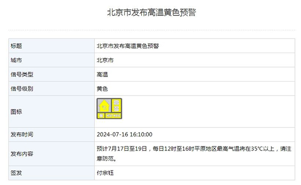 预计7月17日至19日,每日12时至16时平原地区最高气温将在35℃以上,请注意防范。