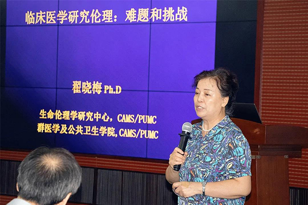 系列讲座特别邀请中国医学科学院生命伦理学研究中心执行主任、北京协和医学院教授翟晓梅就“医学研究伦理:难题和挑战”进行了细致讲解,翟教授列举医学实践与医学研究、受益与风险的评估等方面遇到的现实问题,强调科学研究过程中要始终将保护受试者作为首要责任。同时,北京医院科研处处长张鹏俊老师为新生解读了科学研究中的诚信问题。张老师列举了常见学术不端行为,希望同学们引以为戒,对学术研究保持一颗敬畏之心、不触碰科研工作的底线。