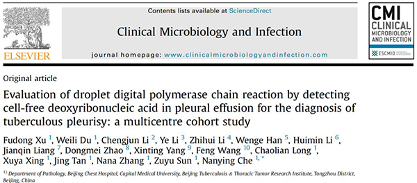 Xu F, Du W, Li C, et al. Evaluation of droplet digital polymerase chain reaction by detecting cell-free deoxyribonucleic acid in pleural effusion for the diagnosis of tuberculous pleurisy: a multicentre cohort study. Clin Microbiol Infect. Published online May 27, 2024. doi:10.1016/j.cmi.2024.05.012
