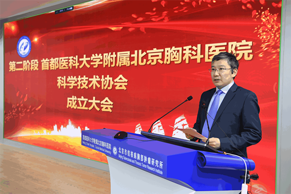 郭鲁钢副主席在讲话中表示,北京胸科医院在北京市及全国胸部疾病防治工作中做出了重要的贡献。成立北京胸科医院科协,体现了医院党委班子对科技创新工作的高度重视,展现了医疗卫生健康系统科技工作者投身科技创新事业的坚定决心。北京胸科医院专业特色鲜明,汇聚着丰富的科技人才队伍和创新成果。希望北京胸科医院科协未来能够强化科技创新,服务北京国际科技创新中心建设;强化人才培养,助力高水平人才高地建设;强化协同联动,融入新时代首都发展大局,加强与各级科协组织协同联动,融合创新,努力为医院的科技工作者在新时代首都发展和科技强国建设中建功立业。