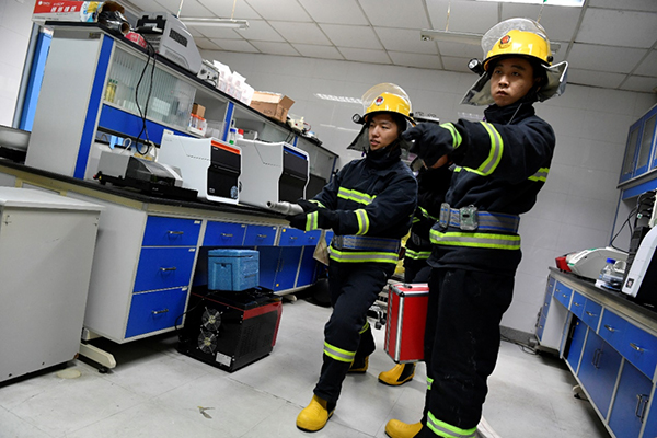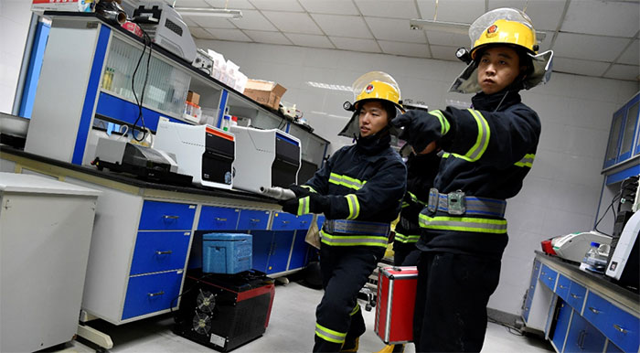 灭火组工作人员迅速断开本区域总闸,并带领1名学生清理冰箱内危险品、转移附近有机溶剂及易燃易爆物品。灭火组另一名学生就近取灭火器进行灭火。疏散组工作人员立即组织楼层工作人员进行分工,并与一楼三楼工作人员协调,组织疏散楼内所有人员,将二楼难以疏散的人员用担架往外转运。15:15消防中队人员到场后,立即组织灭火,最终快速扑灭火灾。15:16医疗救护组组长医务处负责人到场组织伤员救治工作。15:40保卫处、总务处、院办组成调查小组,配合消防部门对火灾事故情况进行调查。