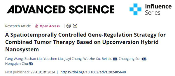 近日,首都医科大学附属北京胸科医院转化医学研究室褚洪迁团队在国际权威期刊《Advanced Science》(影响因子:14.3,中科院1区 TOP 期刊)上发表题为“A Spatiotemporally Controlled Gene-Regulation Strategy for Combined Tumor Therapy Based on Upconversion Hybrid Nanosystem”的研究论文。