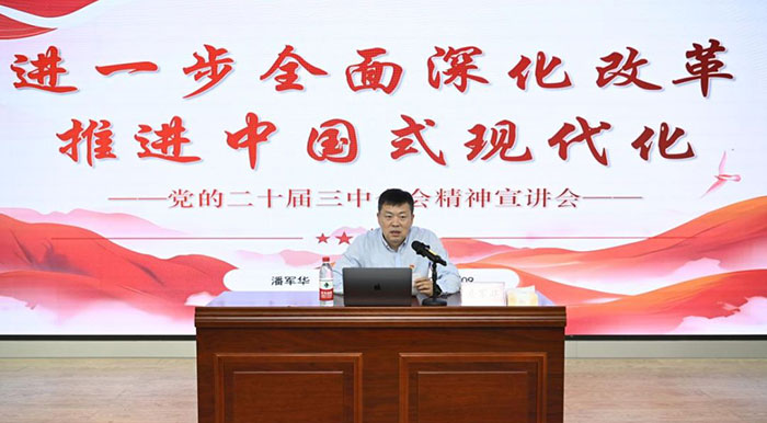 潘军华同志紧扣宣讲主题,简要介绍了全会的基本情况,系统阐述了深入学习领会全会精神的重大意义,从深刻把握进一步全面深化改革的重大意义和总体要求、深刻把握进一步全面深化改革的重大举措和战略部署、深刻把握进一步全面深化改革的根本保证和落实要求三大方面,理论与案例相结合,对党的二十届三中全会精神作了全面深刻的解读。