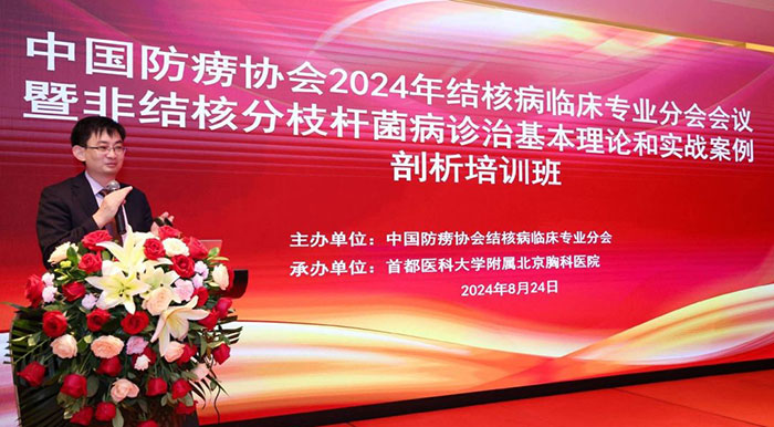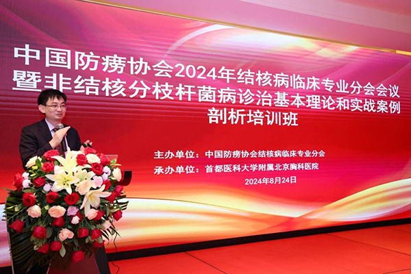 随着人口老龄化和诊断水平的提高,越来越多的非结核分枝杆菌病患者被发现,但非结核分枝杆菌病的诊治仍是困扰医务工作者的难题。为了提高相关领域工作者的诊治水平,首都医科大学附属北京胸科医院于2024年8月24日和25日在北京举办了“非结核分枝杆菌病诊治基本理论及实战案例剖析培训班”。本次培训班采用线下和线上相结合的方式,吸引了来自全国10多个省市的100多名学员线下参会,线上参会人员超过2万人次。