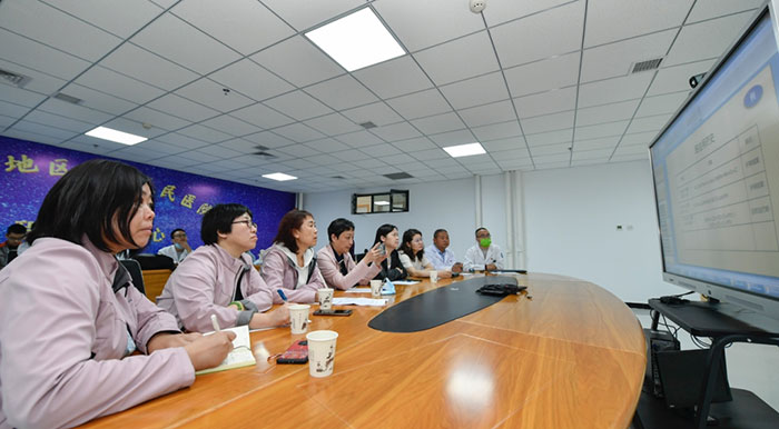 听完病情陈述,专家团队的马丽萍接过CT影像胶片,仔细端详患者的病情;杨新婷俯下身,继续询问着患者的症状;吴桂辉和曾谊拿过病历夹,翻阅起患者的检查单。专家小组分工合作,合力为患者的疑难病症寻找着突破口,不放过任何一个蛛丝马迹。霎那间,一个汇聚南北专家的顶级会诊架起了连通东西部民族情谊的连心桥。而第一次见到这种阵仗的吐来克大叔也是紧紧地盯着赵岁龙医生,竖起耳朵仔细听着他翻译过来的每一个字词。