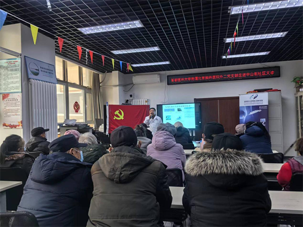 为推进党建业务融合,不断创新党建工作形式,推动优质医疗资源下沉社区,北京胸科医院外二党支部开展党日活动,为中山街道居民“送医到家”。在支部书记王建国同志的带领下,义诊团队深入社区,开展线下义诊活动。为方便极端天气下社区高龄人群就诊,活动现场从会议室转移到社区群众中,为社区老年人提供更加便捷的“上门”诊疗服务。