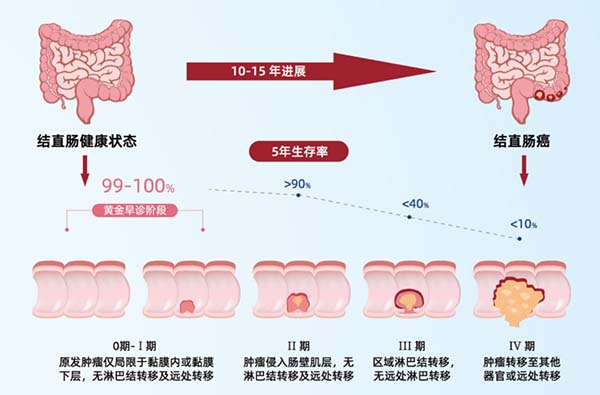 结直肠癌是消化道恶性肿瘤,已成为全球第三大癌症,我国的结直肠癌发病率呈现逐渐上升的趋势,严重危害国人健康。2020年我国首个大规模结直肠癌患者诊疗现状调查的中期结果显示,83%的患者在首次确诊时已处于中晚期,而结直肠癌分期越晚,患者五年生存率越低。