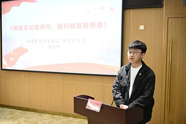 党员们在学习中了解了党的早期艰苦创业斗争史,重走挑粮小道,学习革命先辈依靠群众求胜利的井冈山精神,在追溯历史中,深刻体会到“星星之火可以燎原”的气概......在结班仪式上,党员们结合学习内容、立足本职岗位分享了自己对于井冈山精神的体悟。教育党支部书记、教育处副处长、副研究员纪婷婷,信息中心主任、主任技师安军,胸外三科副主任、主任医师韩毅,急诊科主治医师李文胜、细菌免疫学实验室研究实习员李浩然、党委办公室副研究员任晶等同志与党员们进行了深入的交流。伦理办公室助理研究员张彤群创作了一首七律《井冈山之行》,以朗诵的形式与大家分享。