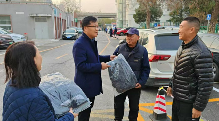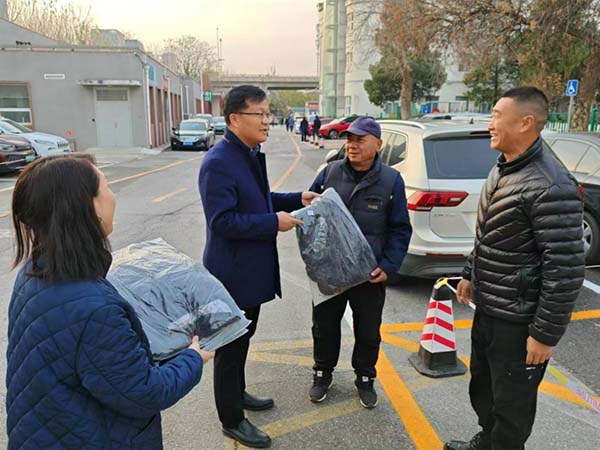 冬季来临,寒意渐浓,为扎实做好医院基础运行一线岗位户外作业职工及第三方人员防寒保暖工作,近日,首都医科大学附属北京胸科医院基础运行党支部在党委委员、副院所长孙树学和支部书记高静韬的带领下向所辖科室及第三方人员发放发热马甲,递送冬日问候。