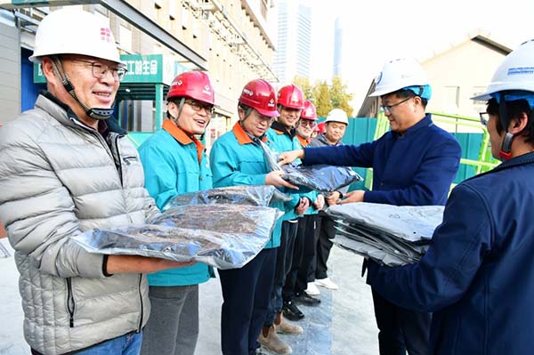 孙树学同志慰问了户外安保人员、停车场管理人员、绿化及工程运维人员、在建项目施工人员等,并在现场与大家热情交谈,提醒他们气温逐渐下降,要注意增添衣物、防寒保暖。同时,为这些户外一线工作人员配发了基础运行党支部准备的发热马甲,感谢他们的坚守与付出。发热马甲可通过充电宝供电,为穿着者提供持续温暖,对于长时间在寒冷户外环境作业的人员可谓是雪中送炭。“感谢医院的关心,这件马甲太实用了,让我觉得心里热乎乎的,干活更有劲儿了。”一位停车管理人员激动地说道。收到保暖衣物与关怀的员工纷纷表示,将以更加饱满的热情投入到工作中,继续发扬吃苦耐劳的精神,保持踏实肯干的工作作风,为医院基础运行及工程项目建设高效有序推进提供坚实保障。