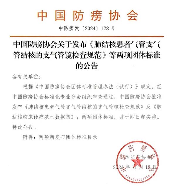 北京胸科医院牵头发布《肺结核临床诊疗基本数据集》团体标准