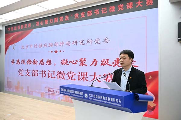 为深入学习贯彻党的二十届三中全会精神,巩固党纪学习教育成果,坚持不懈用党的创新理论凝心铸魂,12月4日,首都医科大学附属北京胸科医院党委举办了首届“学思践悟新思想,凝心聚力跟党走”党支部书记微党课大赛,此次比赛旨在提高党支部书记的理论水平和授课能力,加强党支部间的学习交流,进一步提升党建工作水平,为医院高质量发展赋能。
