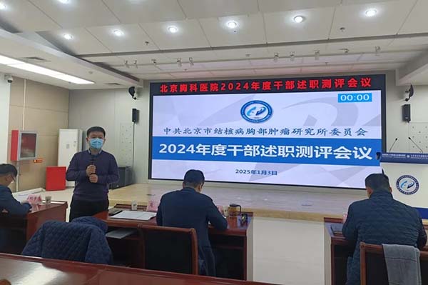 为持续加强干部考核管理、强化干部履职能力,2025年1月3日,首都医科大学附属北京胸科医院召开2024年度干部述职测评会,医院领导班子成员、科室主任及副主任、二级科室主任及副主任和科室负责人参加了会议,会议由党委副书记、纪委书记庞宇主持。