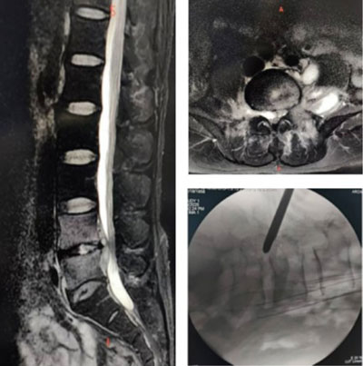 鉴于该患者目前的情况,治疗采取了微创手术方式,即椎间孔镜手术。在局麻下,切口约1cm,使用椎间孔镜直达锥管内,进行结核病灶清除及神经减压。微创手术的优点是手术创伤小、神经减压充分、手术时间短、术中出血少,且无需全麻,对身体影响小。患者术后即刻感觉右足及右小腿麻木及疼痛明显好转。
