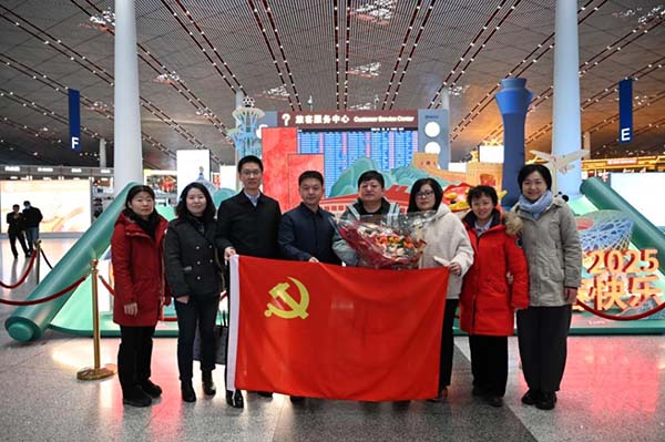 2025年2月27日,首都医科大学附属北京胸科医院肿瘤二科副主任医师张权作为北京市服务东北项目专业人才启程赴黑龙江省大兴安岭地区人民医院担任副院长,开展为期两年的援助工作。医院党委副书记、纪委书记庞宇同志带领张权所在党支部书记、科室主任以及党委办公室、医务处、宣传中心等一行7人,与张权家人共同到机场送行。
