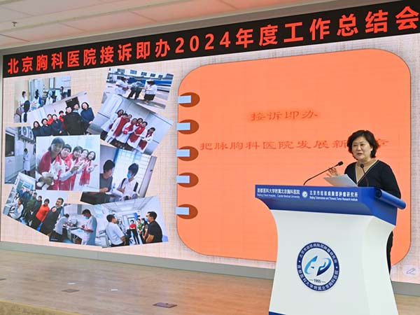 北京市卫健委安保处处长王开斌对胸科医院的接诉即办工作给予了充分肯定,并提出指导意见,他指出,“真正的满分在人民群众的心里,患者的高度认可才是真正的高分。”王开斌强调,医院应认清当前面临的压力和挑战,依托诉求数据挖掘管理短板,将高效办理和主动协调相结合,推动接诉即办与医院高质量发展的深度融合。