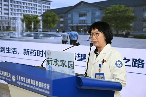 活动现场,多位患者分享了他们的抗癌故事,展现出医患携手战胜病魔的坚韧力量。北京女孩亚飞讲述了自己跌宕起伏的抗癌历程。12年前,刚从英国留学归来的她,入职前体检时竟发现胸腔有巨大肿瘤,历经3次手术以及放疗、化疗,北京多家三甲医院医院都对她的病情表示无奈。然而在新欣家园遇到北京胸科医院胸外二科主任刘志东后,亚飞迎来了转机,重获新生。如今,亚飞不仅成为了一个2岁孩子的妈妈,还实现梦想,成为金融精英。她感慨地说,自己的第二次生命是刘主任赋予的。